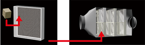 『セピオ』は、活性炭では取りにくいアルデヒド類の浄化にも抜群の効果を発揮します。 |