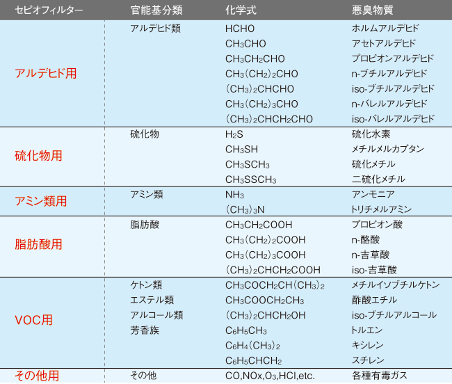 | ほとんどの悪臭・有害ガスに対応できる | |